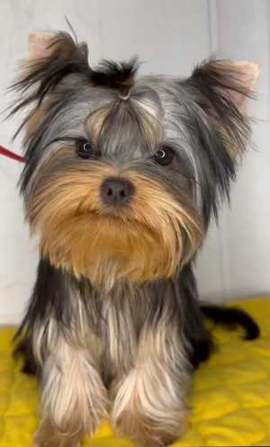 Очаровательный парень шоколадного йорка в поиске лучших родителей НА ДАННОМ ЭТАПЕ В АЗИАТСКОЙ СТРИЖКЕ, КАК НА ВТОРОМ ФОТО.
