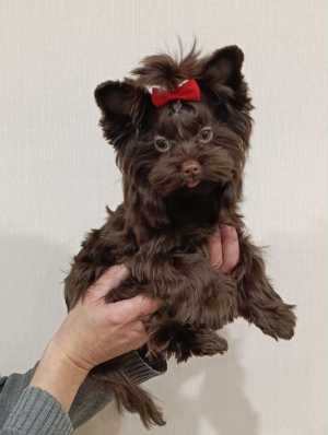 Очень красивые шоколадные Йорки с прекрасной родословной клеймом и ветпаспортом . Здоровы активные .