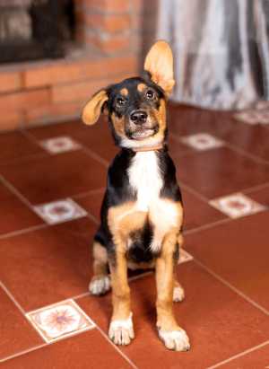 Шеба активная, нежная и очень веселая девочка. Не крупная. Хорошо ходит на поводке и обожает внимание человека.